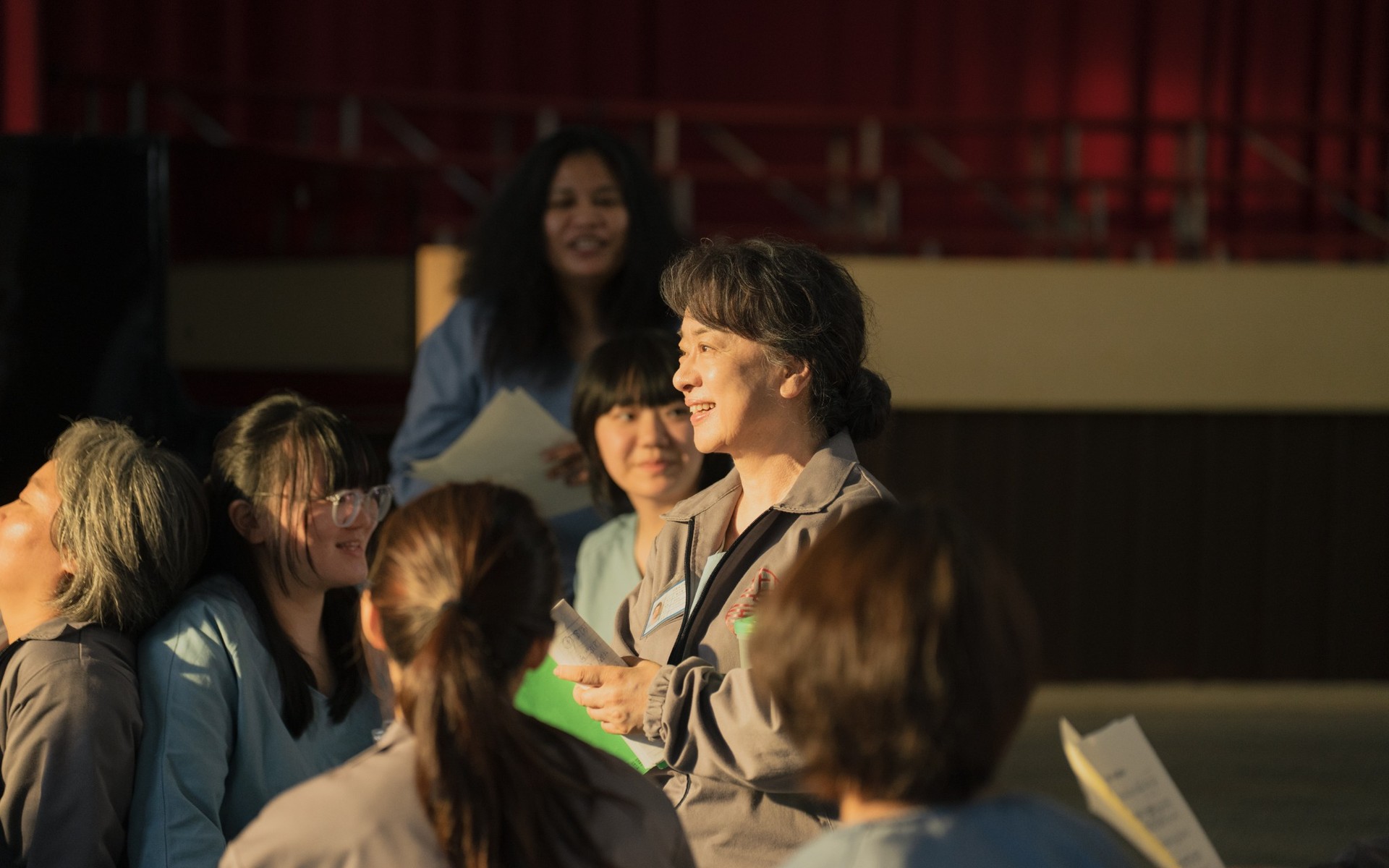 不同於韓版《美麗的聲音》,《陽光女子合唱團》以歡樂喜劇為基底,既展現了易怒狂躁的監獄氛圍,亦刻畫人的多面性。呂安弦分享,這些設計皆源於多次田調觀察,「他們叫新來的人『新收的(sin-tsioh-ê)』,然後為了要樹立這個舍房的威嚴以及規矩,我自己判斷那是一種沒有安全感,因為大家資源很有限,就會變得很保護這個東西,所以一進來的新人,他們一定會想要把他『壓落底(ah-lo̍h-té)』。」