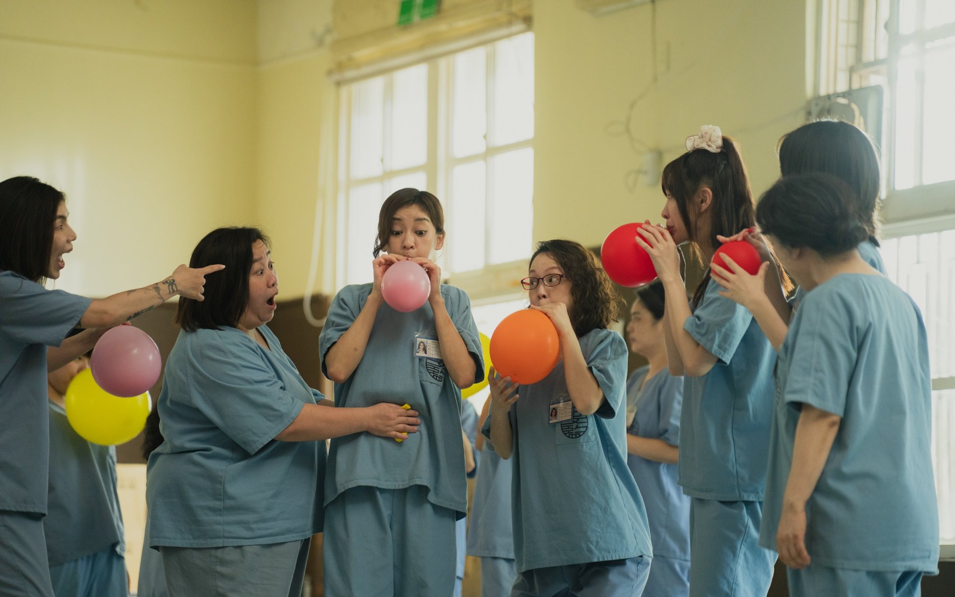《陽光女子合唱團》結合宛如《機智牢房生活》的群像喜感,如阿珮(孫淑媚 飾)和阿蘭(安心亞 飾)逗趣的台式髒話,與王姐(鍾欣凌)所率領的另一派女囚,兩方人馬逞兇鬥舞、嘴砲互嗆;或如宥芯初入監時孤傲叛逆,被阿珮和阿蘭各種欺壓霸凌,可兩人在芸熙面前,都是天使般的阿姨。